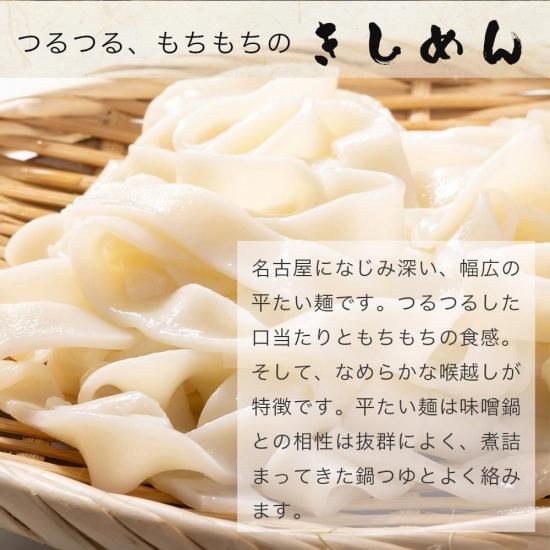 きしめんは、半生でお届けとなります。お湯で10分程度、茹でていただいてから味噌鍋でご利用いただけます。